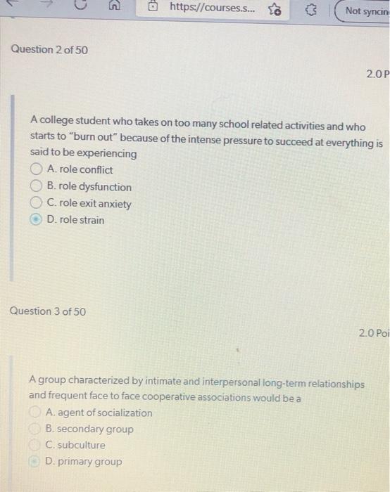 Solved N Https Courses To Not Syncin Question 2 Of 50 Chegg Com